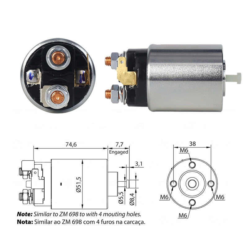 High-Quality ZM Series ZM4-698 Starter Solenoid, Direct Replacement for Mitsubishi MD611591, OEM Standard, Durable Performance, Fast Shipping & 12-Month Warranty